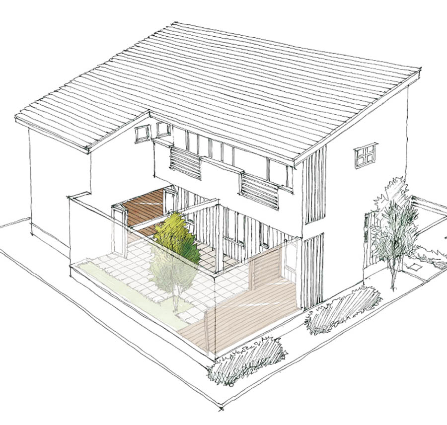 四季のある日本で、閉鎖された部屋での暮らしはあまりに味気無いものです 。外(庭)を取り込んで暮らし、一日中窓を大きく広げて開放的に暮せること。 それが、コート的リビングスタイルのはじまりです。