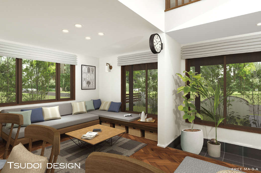 聞こえてきそうです。扉を省くことで、見晴らし風通しの良いオープン設計としています。