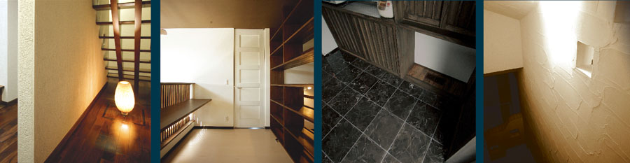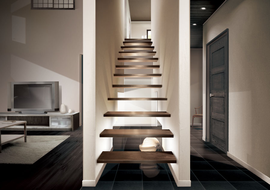 階段下のフロアーライトの光が